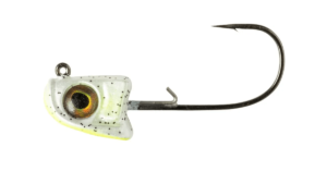 Featuring a fine wire 1/0 Gamakatsu hook and wire bait keeper, it’s designed to match finesse swimbaits and our 2.75” Drop Minnow perfectly. Our custom head design, lifelike 3D eyes, and forward line tie placement allow it to swim perfectly horizontal and through sparse vegetation with no hang-ups. This head excels when fishing with long light action rods, 4-8lb test line and making long casts required to trigger big pressured fish.